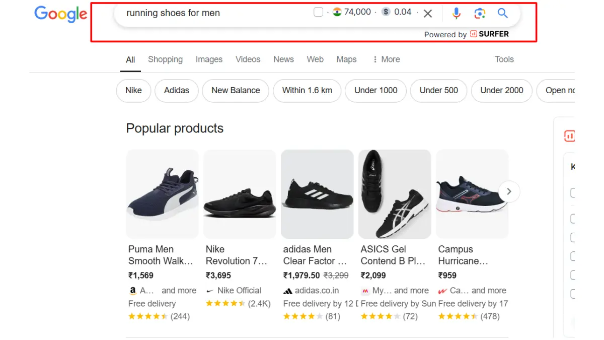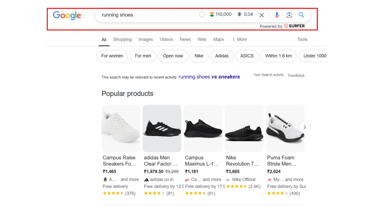 For example, when you search for running shoes, the intent is a little clear to Google that the user is searching for running shoes, but it’s not very clear whether the user is searching for running shoes for men, women, or kids.