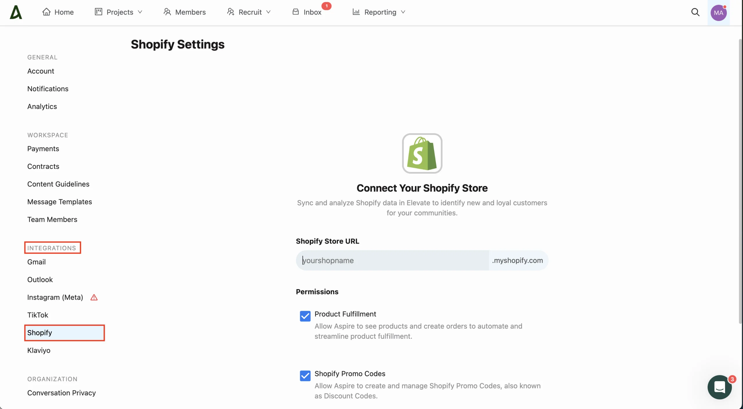 Setting up the Aspire Shopify integration is easy and secure, for this follow these detailed steps to get started. This process links your store’s data to Aspire in minutes, enabling seamless influencer marketing.