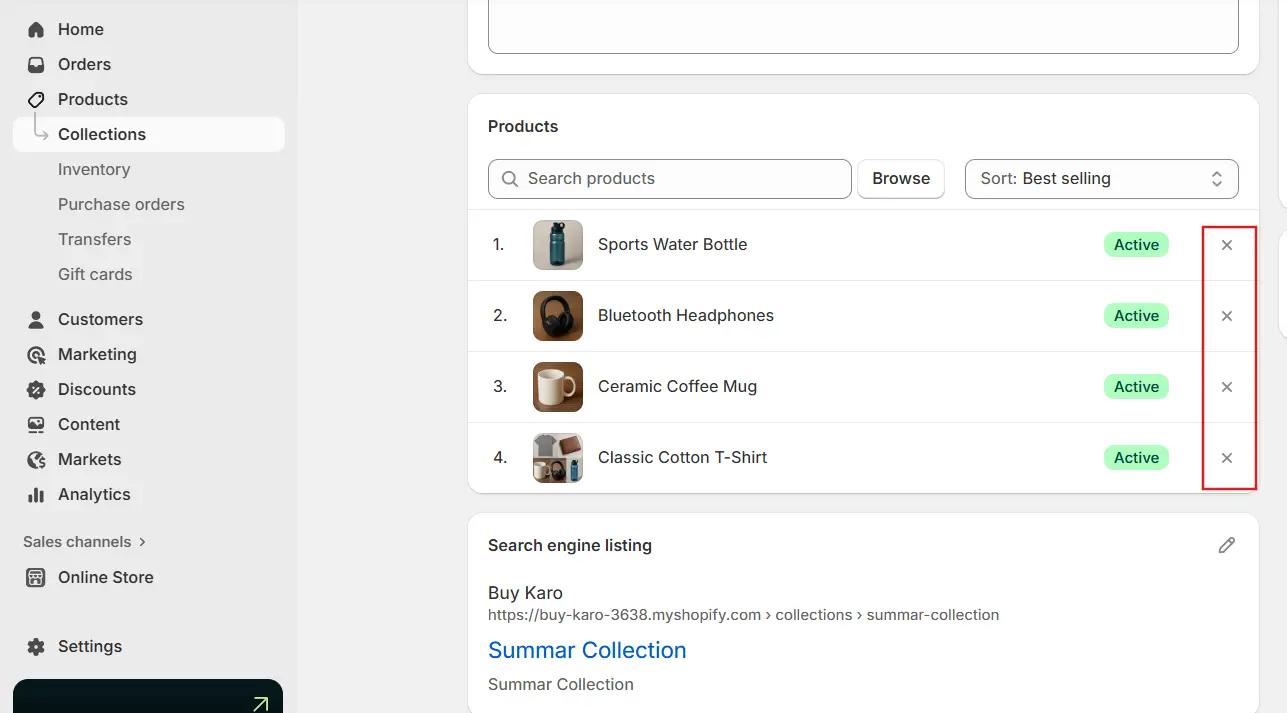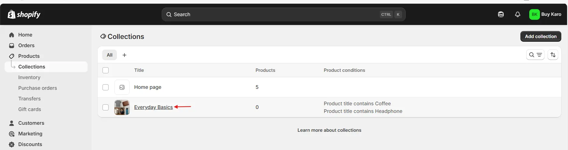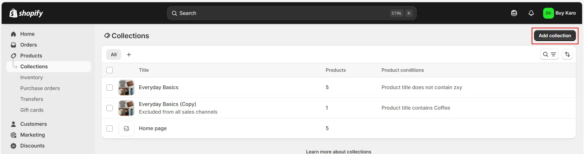 Collections appear as dedicated pages on your online store, making it easy for shoppers to navigate grouped products. You can create and handle them through your Shopify admin panel under Products > Collections.