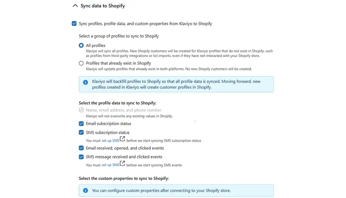 Synchronizing profile data makes customer information match between Klaviyo and Shopify.