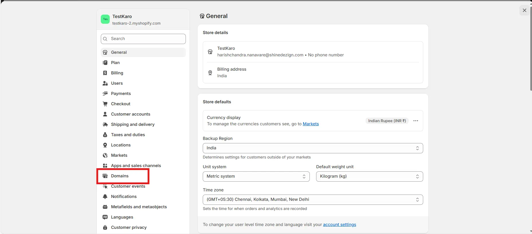 - You will see a list of all domains connected to your store, including your primary domain and any additional domains.