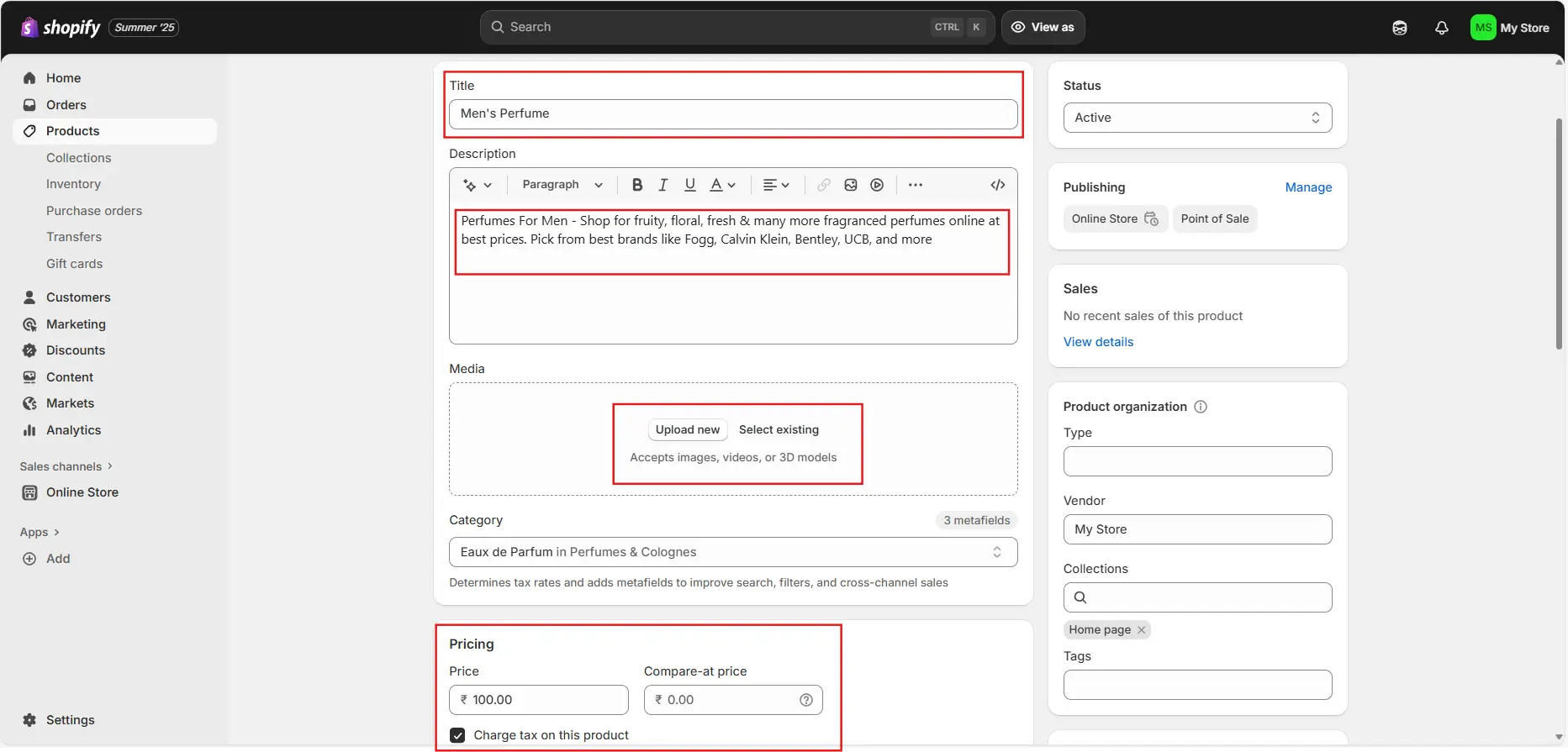 - Click on “Add product” and fill in the necessary details such as product name, description, images, pricing, and inventory.