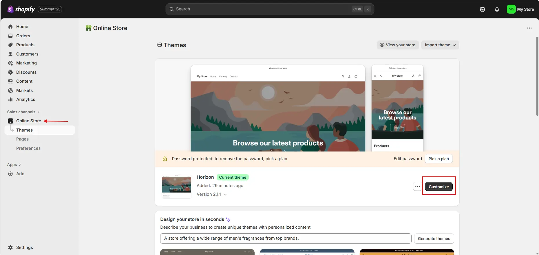 Set Up Pages: Create the necessary pages for your site, such as Home, About, Contact, and a dedicated page for your Shopify products.