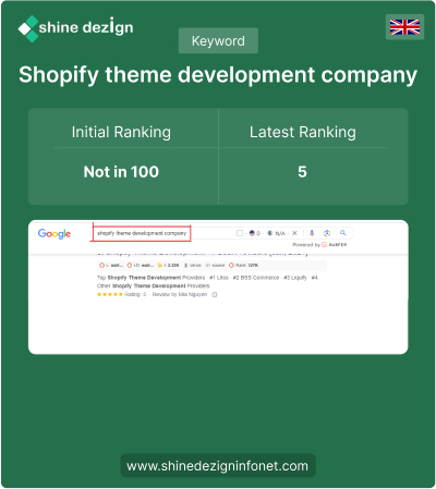 At Shinedezign Infonet, our commitment to excellence is highlighted through our extensive portfolio of 80+ successful projects. These projects testify to our proficiency in optimizing Shopify stores for maximum online sales. We take pride in our track record of delivering driven results to our customers, and we are ready to bring the same level of expertise to your business.